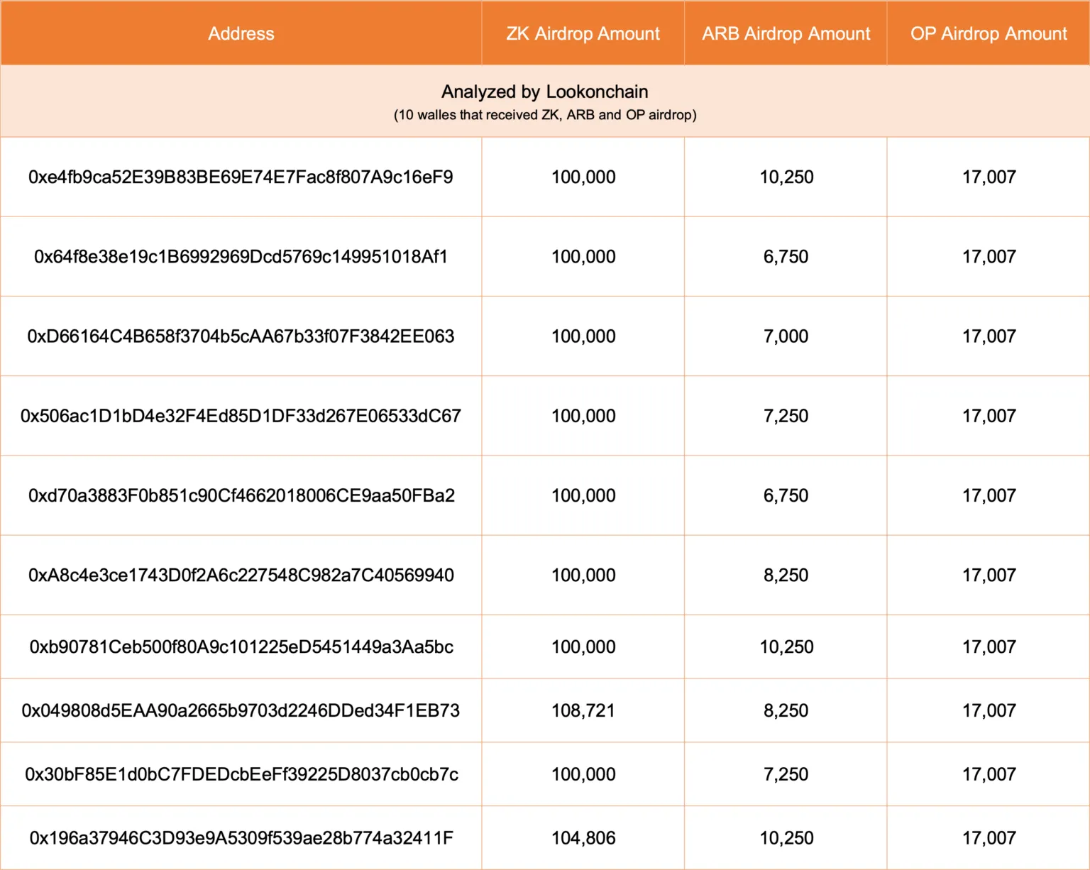 SponsoredLa transparencia de la blockchain permite que otros analicen estas acciones y potencialmente se beneficien imitando sus estrategias. Los analistas de Lookonchain revelaron una lista de 10 usuarios que participaron rápidamente en el airdrop de ZKsync.
