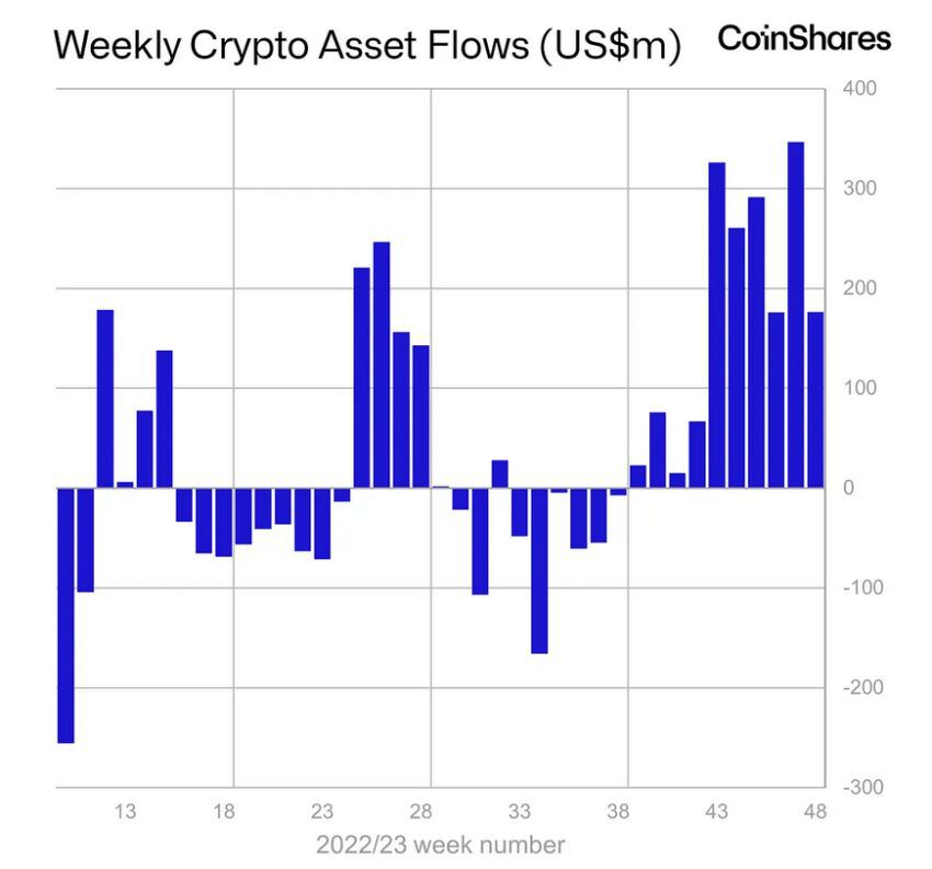 La semana pasada, la entrada de fondos en productos de inversión en criptomonedas ascendió a 176 millones de dólares y el importe total de las inversiones en 10 semanas ascendió a 1,7 mil millones de dólares.