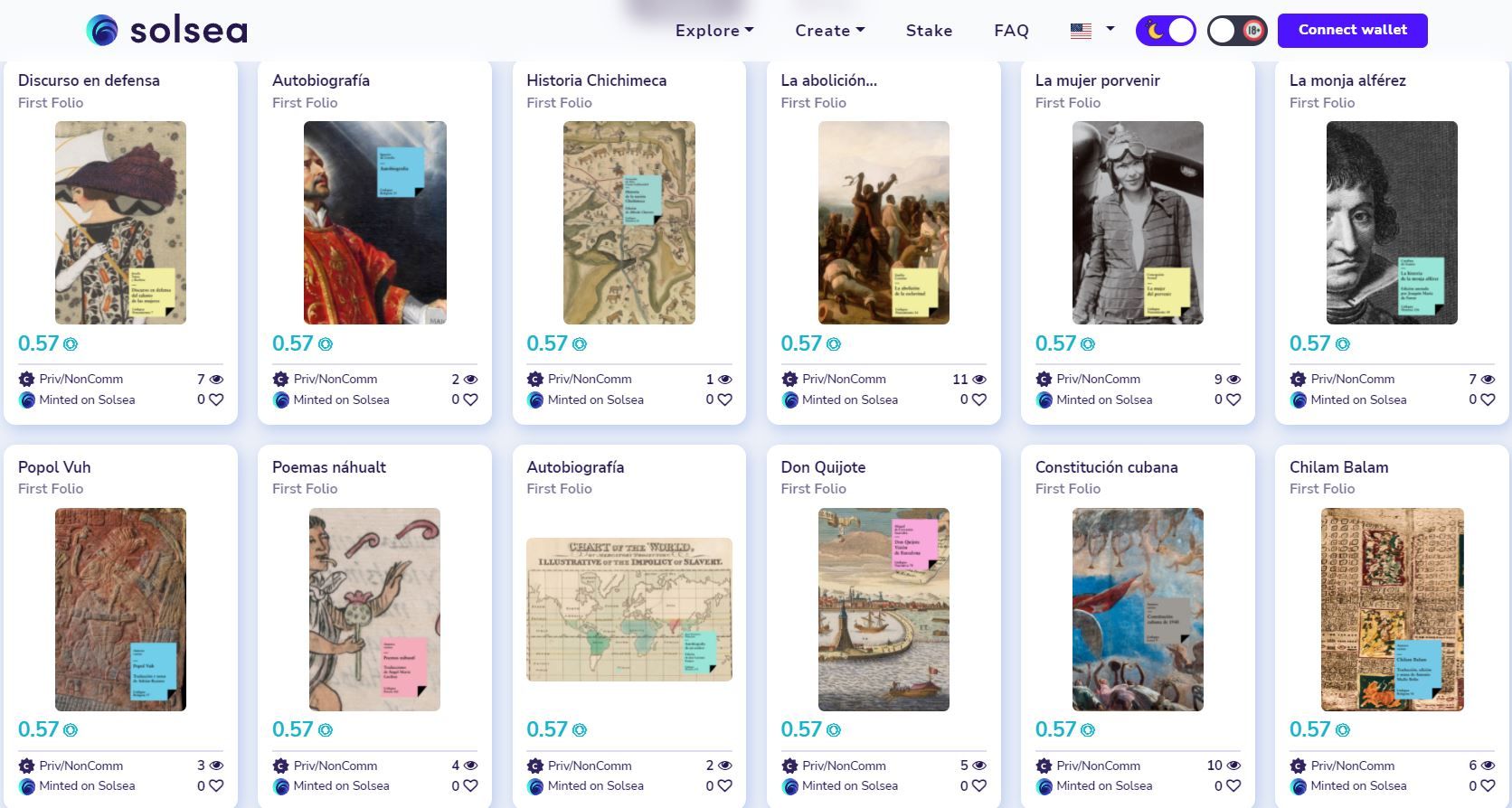 Las ventas de los libros en NFT se realizan a través del marketplace Solsea, el cual está enfocado en colecciones editoriales y las obras se adquieren con la criptomoneda Solana (SOL). El precio promedio de las obras es de 0,57 SOL, que equivale a $55,27 dólares estadounidenses.