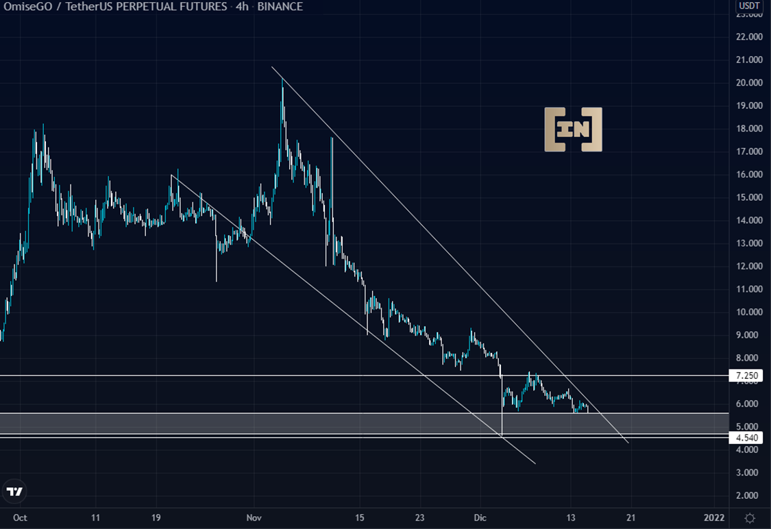 OMG presenta el patrón chartista “cuña descendente”, el área de soporte ubicado entre los 4.5 dólares y 5.8 dólares se podría considerar una pauta de inversión, debido a que el rango de caída indica que la tendencia descendente está perdiendo fuerza.