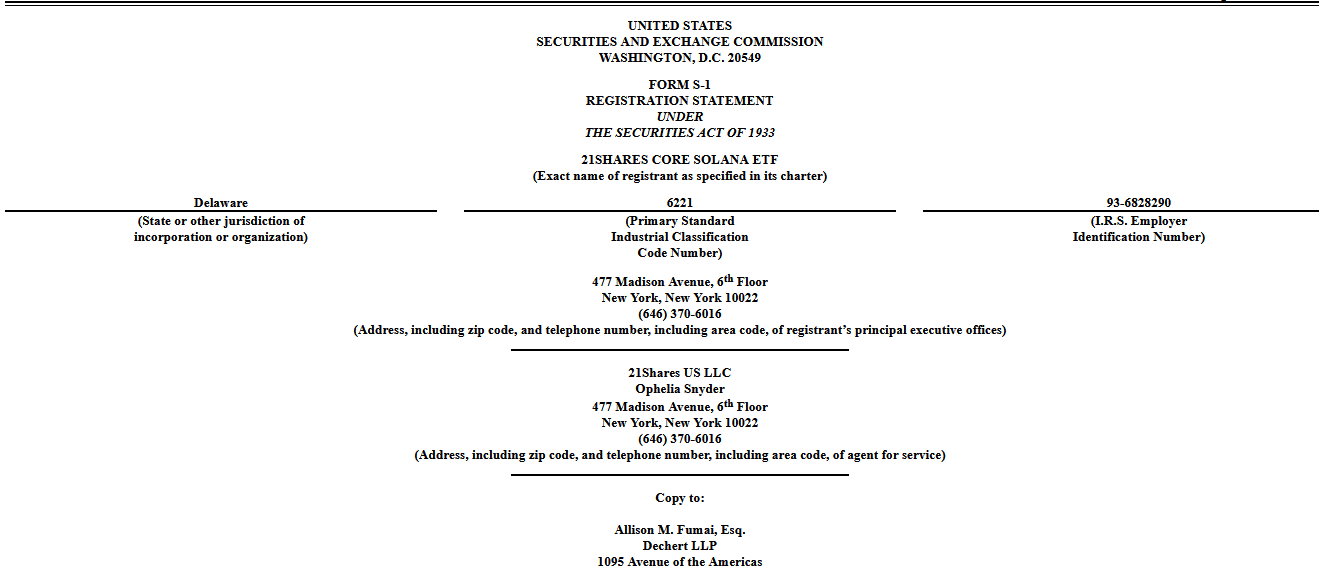 21Shares ha presentado oficialmente una solicitud para un ETF de Solana. El emisor del ETF de Bitcoin Spot presentó un nuevo ETF basado en criptomonedas ante la Comisión de Bolsa y Valores de EE.UU. (SEC) hoy viernes.