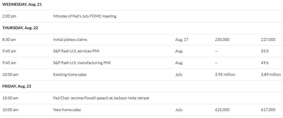 Los traders e inversores también anticipan el discurso del viernes del presidente de la Fed, Jerome Powell, en la política económica anual Jackson Hole. Los mercados estarán muy atentos a lo que Powell tenga que decir en el retiro.
