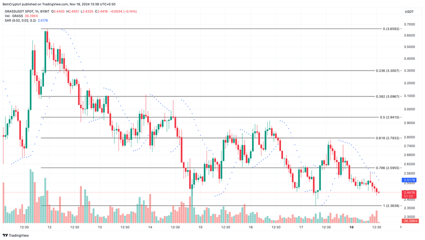 Sponsored SponsoredSin embargo, al momento de escribir este artículo, las líneas punteadas del indicador están por encima de GRASS, lo que sugiere que el valor podría caer por debajo de los 2,36 dólares. En particular, si la presión de compra aumenta antes del informe del miércoles, el precio de la altcoin podría subir hacia los 3,30 dólares.