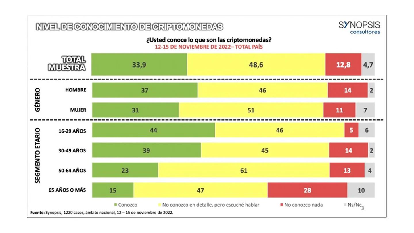 Los datos van en sintonía con la relación entre Argentina y las criptomonedas. Más del 80% de los argentinos tiene conocimiento de la existencia de las monedas virtuales y, de ese total, el 10% invirtió alguna vez o invierte actualmente en criptomonedas. Además, el 22% de quienes conocen sobre criptomonedas, desearían invertir en ellas.