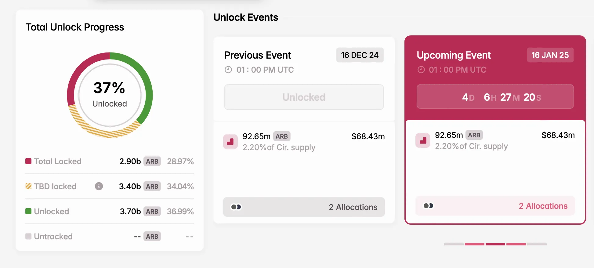 - Número de tokens desbloqueados: 92.65 millones ARB