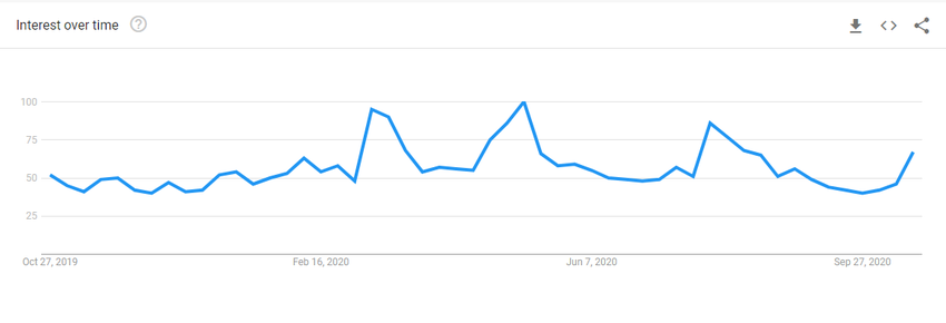 Además de Grayscale, hay otras señales de que el interés en Bitcoin está aumentando. Según Google Trends, hay un aumento en las búsquedas del término “Bitcoin” en las últimas semanas, aunque las búsquedas permanecen por debajo de su pico del año, que ocurrió en mayo.