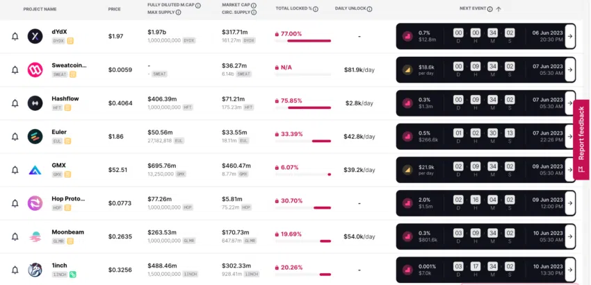Hashflow (HFT) desbloqueará el 0,3 % de su suministro total, con un valor de más de 1,3 millones de dólares, alrededor de la medianoche del martes. Al igual que dYdX, el token HFT también bajó alrededor de 9,16% en las últimas 24 horas.