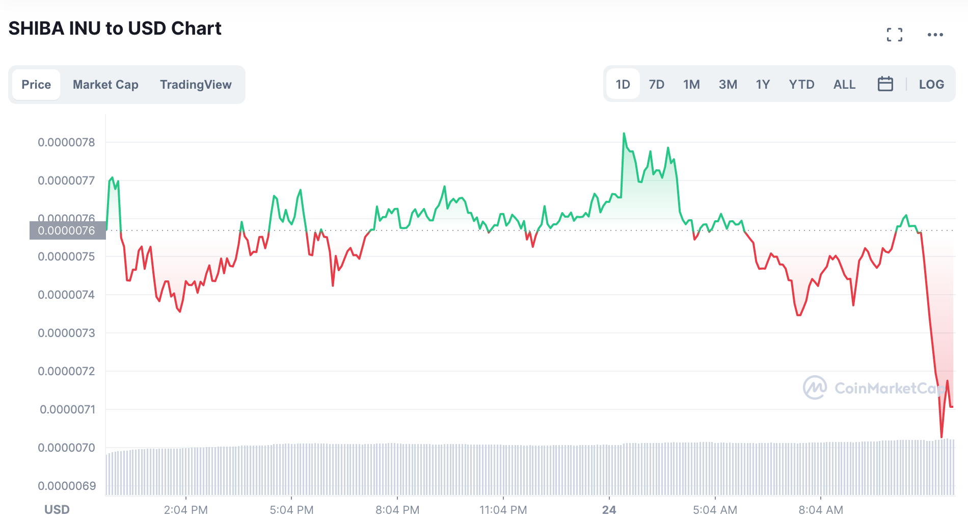 El precio del token de la criptomoneda meme parece haber respondido ante la noticia con una caída, aunque cabe recalcar que entra dentro del espectro normal de volatilidad a la que sus inversores están acostumbrados.