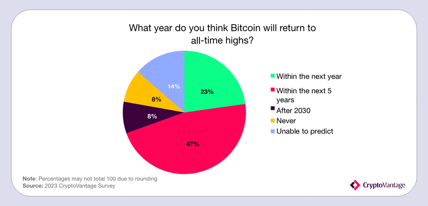 También vale la pena mencionar que el 8% de los encuestados cree que el precio de BTC nunca volverá a sus máximos históricos.