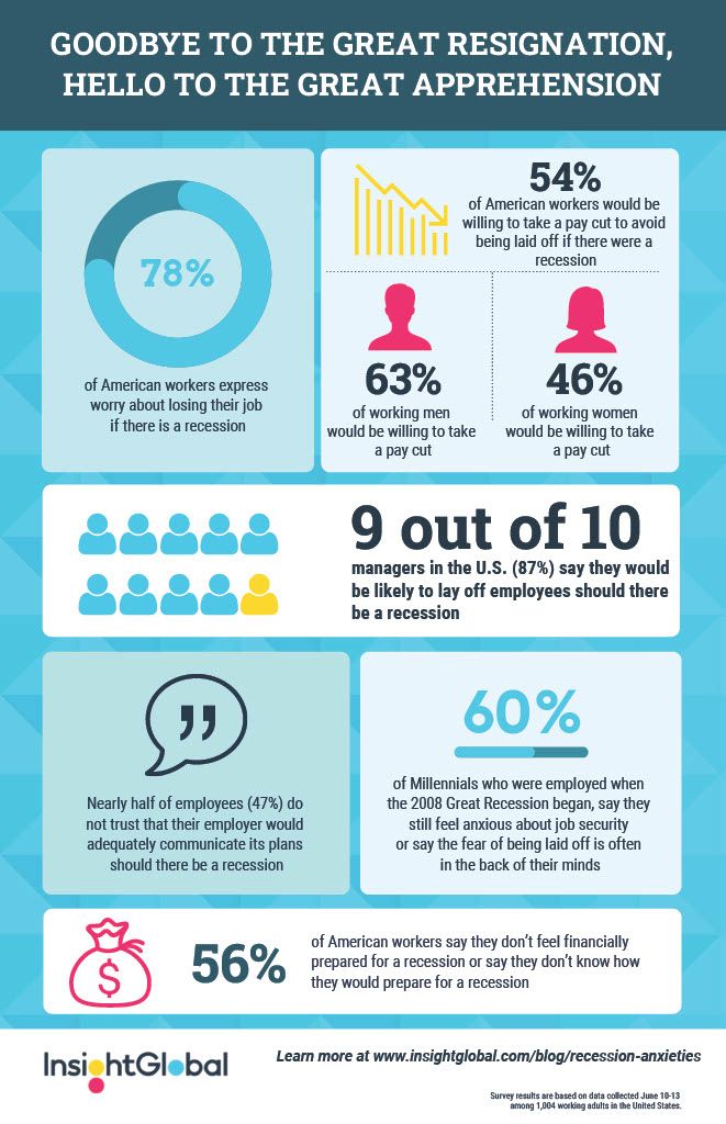 Y es que recientemente, la firma InsightGlobal publicó un estudio realizado en Estados Unidos que demuestra que el 78% de los trabajadores americanos están preocupados por su seguridad laboral ante una posible recesión.