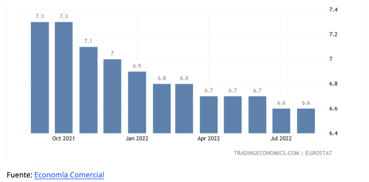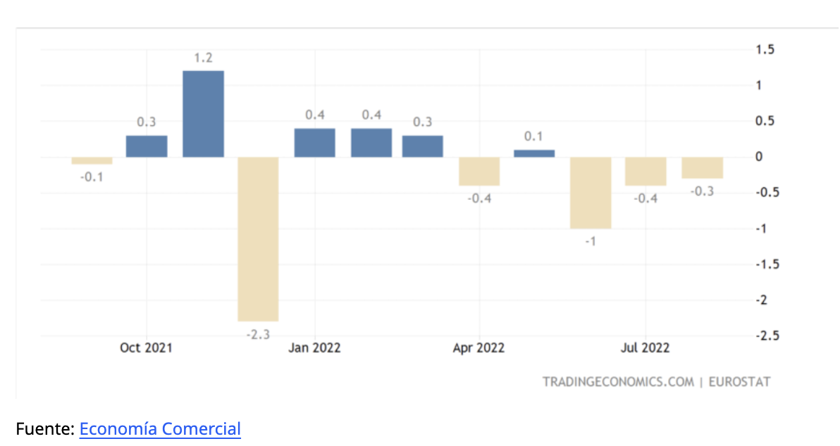 Las ventas minoristas de la zona euro de septiembre de 2022, cuyo lanzamiento está programado para el 8 de noviembre, podrían indicar que la región está cayendo en una recesión. En agosto de 2022, las ventas minoristas, un indicador de la demanda de los consumidores, cayeron 0,3% en comparación con julio de 2022.