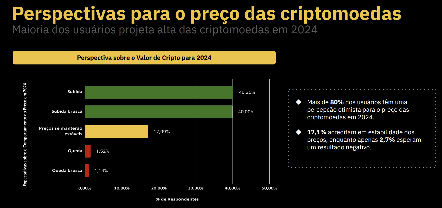 El exchange más grande del mundo, Binance, reveló que el 89% de los usuarios en Brasil tiene planeado aumentar sus inversiones en criptomonedas en 2024. Para los holders brasileños, el 37,5% quiere ganar dinero y 24,4% invertirá por las ventajas de blockchain y 11,5% por los bajos límites de inversión.