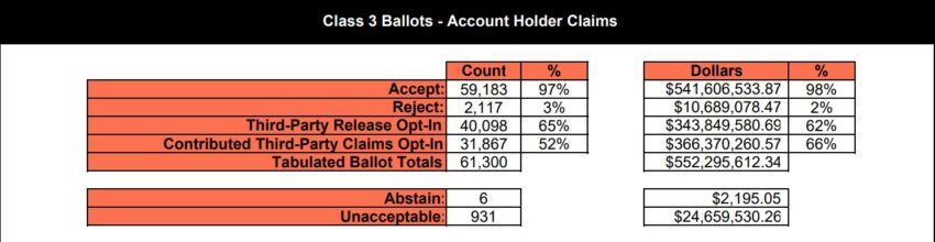 La empresa de administración de bancarrotas Stretto contó los votos y reveló que 59.183 personas apoyaron la propuesta de reestructuración.