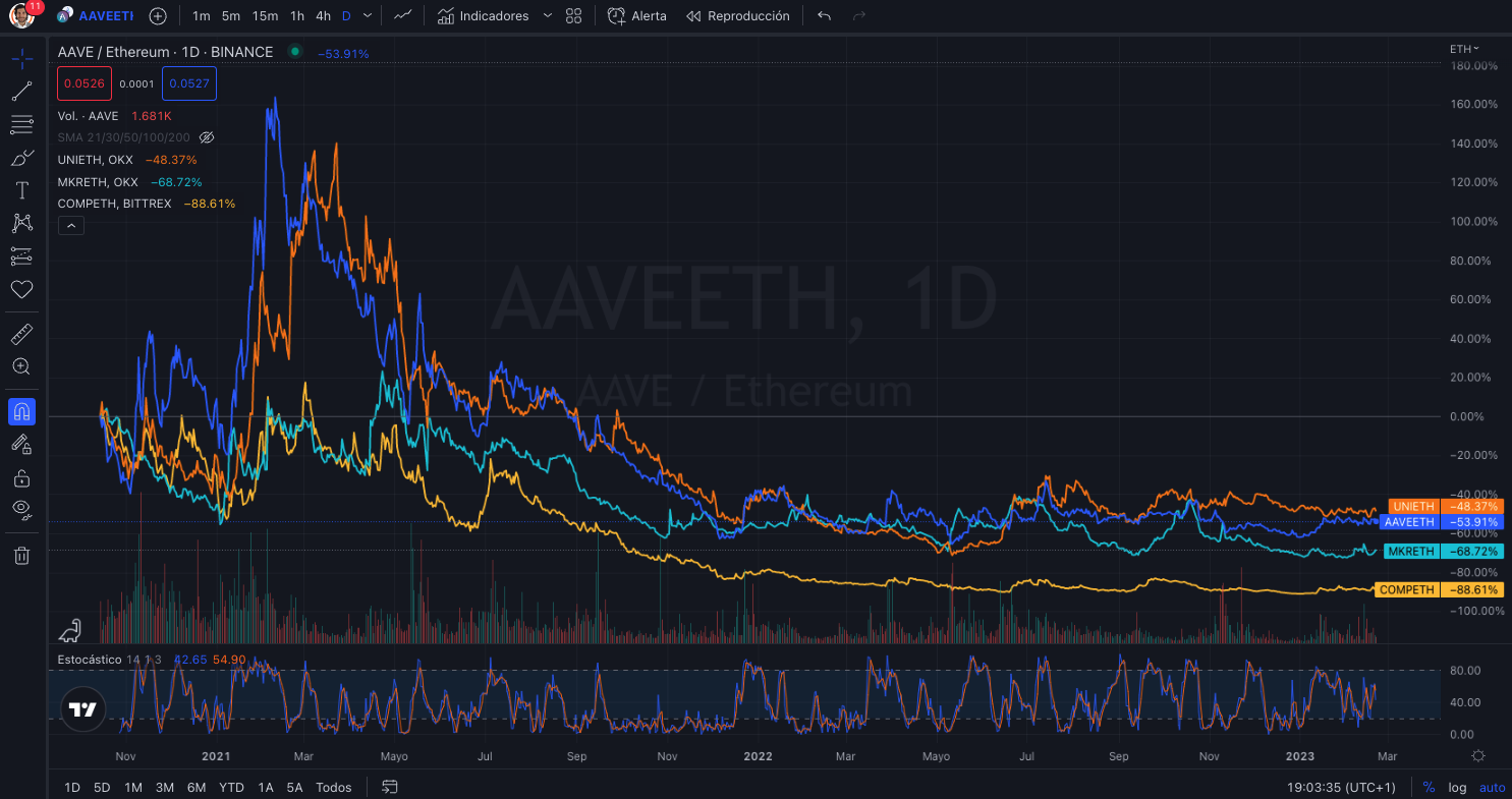 Este gráfico no se ve bien para estos activos DeFi. Por otra parte, desde primeros de año, $UNI, ha sido el que peor desempeño ha tenido en precio:
