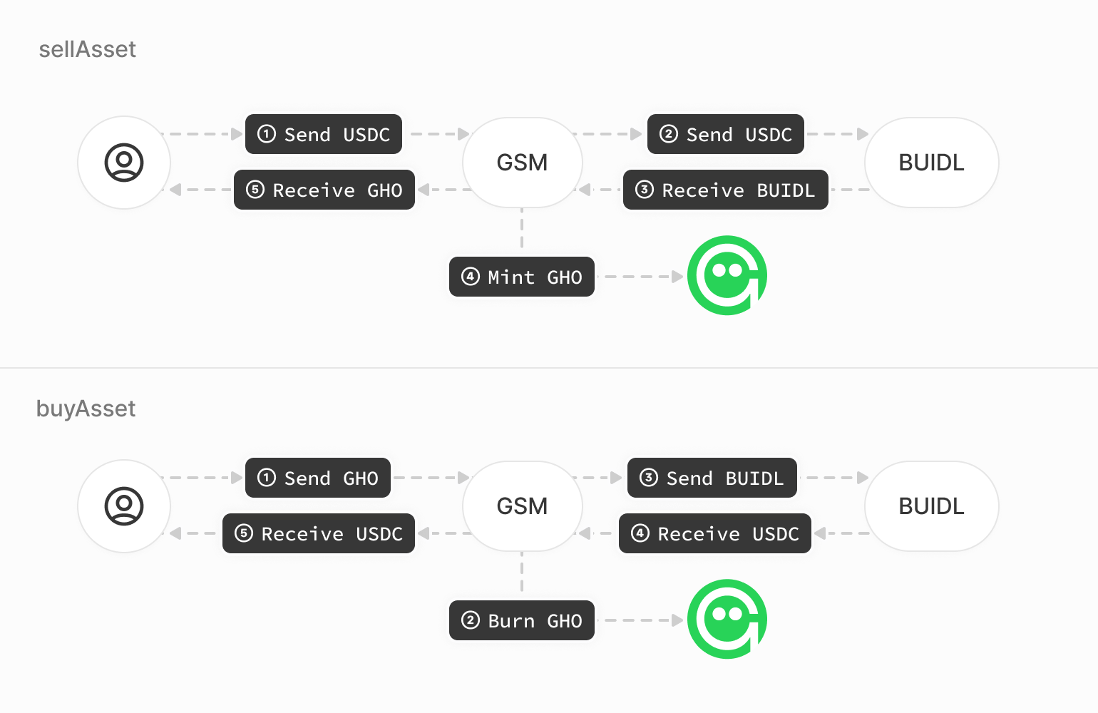 “La instancia GSM propuesta, que se ejecutará en paralelo con las GSM ya existentes, permitirá realizar swaps de proporción fija 1:1 entre USDC y GHO, utilizando el excedente de USDC para acuñar tokens BUIDL. Gracias a la redensibilidad entre USDC y BUIDL, la GSM puede acuñar y quemar BUIDL a cambio de USDC según la demanda del usuario.”