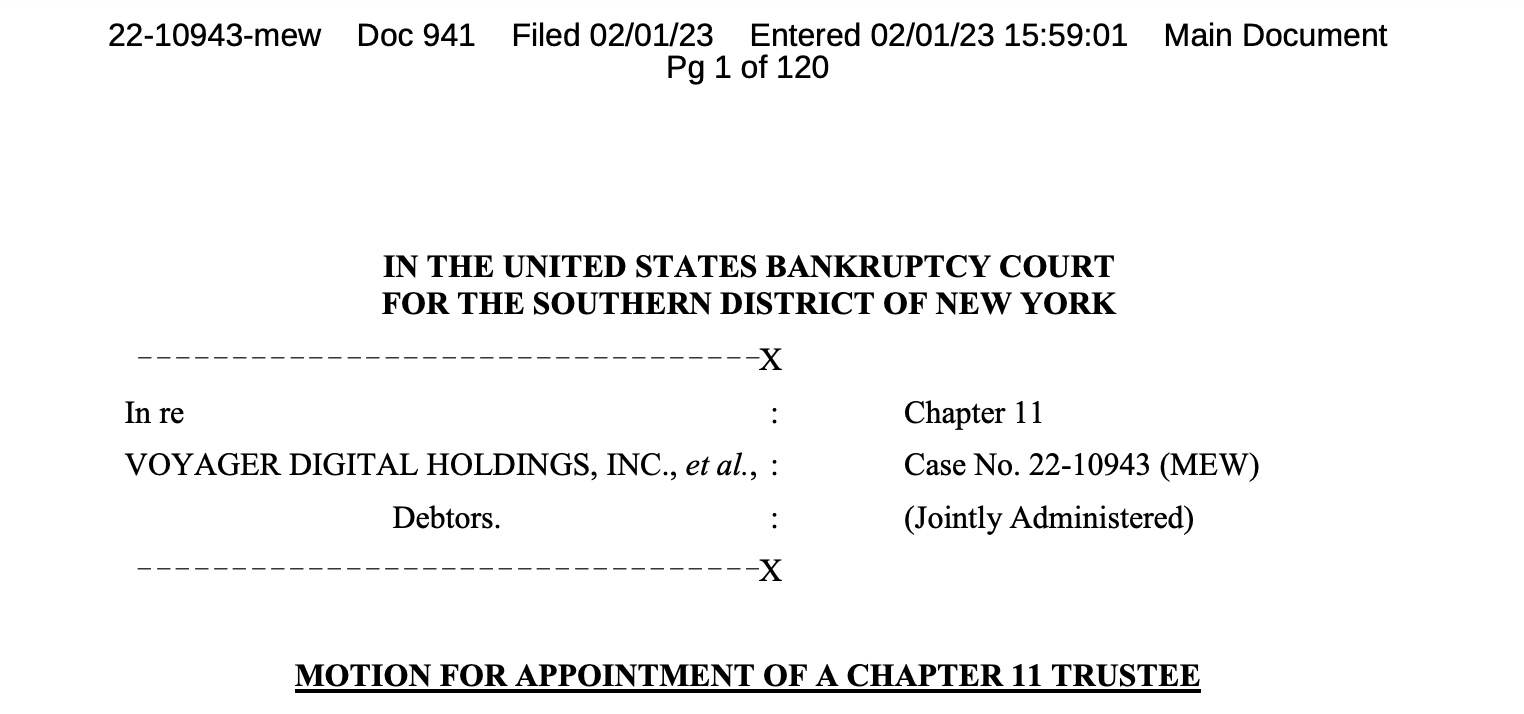 DiVita, que tiene “Víctima de la Voyager” en su biografía de Twitter, tomó el asunto en sus propias manos y solicitó al Tribunal de Quiebras de Estados Unidos para el Distrito Sur de Nueva York que designara fideicomisarios externos para la Voyager.