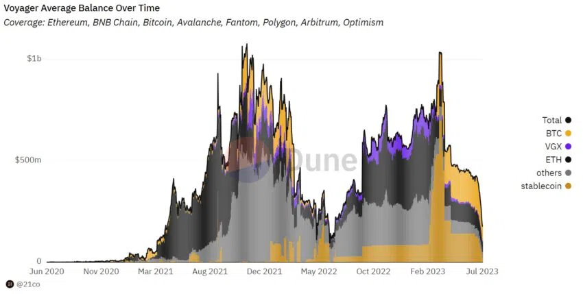 El día que Voyager reabrió los retiros, tenía un saldo total de 426,8 millones de dólares y actualmente es de 176,4 millones de dólares.