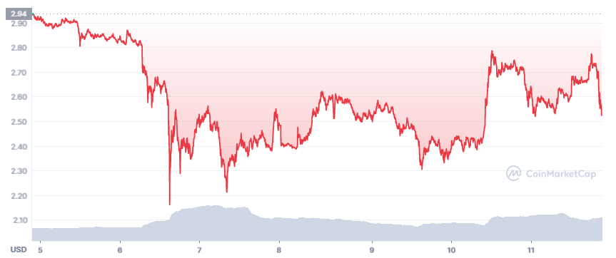 Al momento de la publicación, ADA cotiza en 2.56 dólares lo que representa una caída el 5.33% en las últimas 24 horas y de casi el 14% en los últimos 7 días, según los datos de CoinMarketCap.