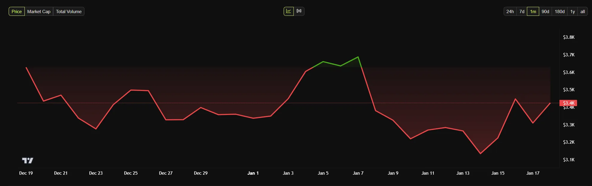 A pesar del anuncio, el rendimiento del mercado de Ethereum ha mostrado un crecimiento limitado. En la última semana, ETH solo vio un aumento del 4%, rindiendo menos que el 10% de ganancia de Bitcoin. Otras altcoins como XRP han mostrado un crecimiento más fuerte. En general, el precio de Ethereum ha permanecido por debajo de 3,800 dólares desde enero, y su dominio del mercado continúa rezagado en medio de tendencias de consolidación más amplias.