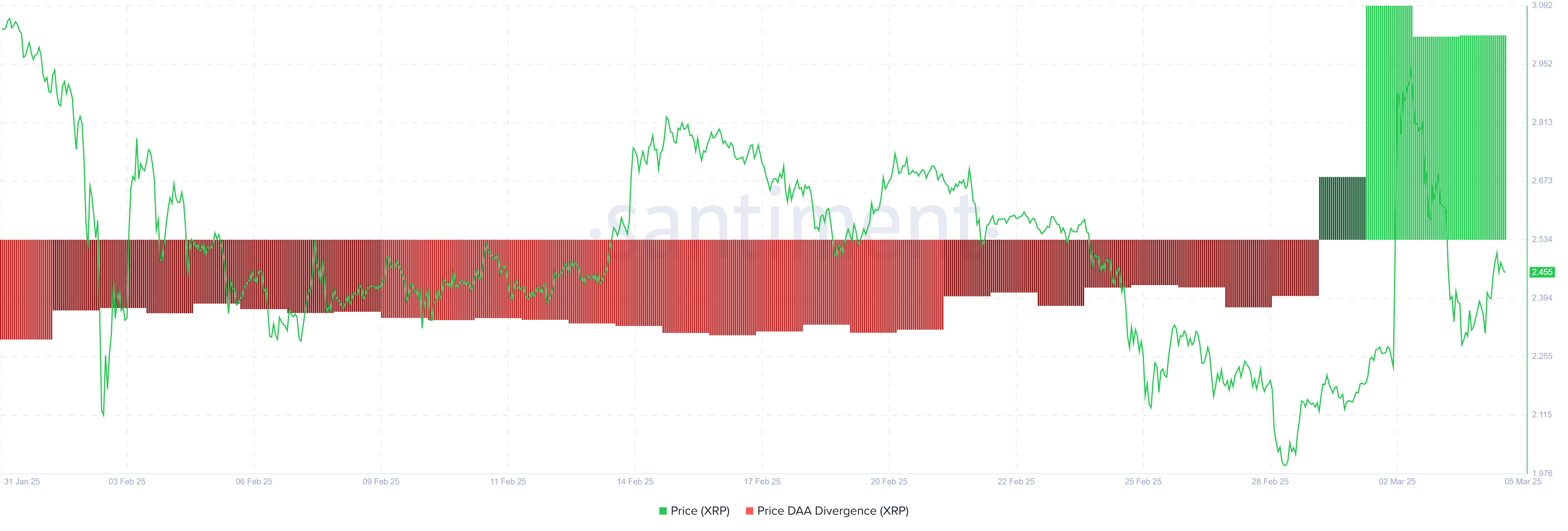Esta divergencia indica que, mientras el mercado en general ha experimentado volatilidad, XRP está mostrando fortaleza. Con más inversores manteniendo sus posiciones y menos optando por vender, el sentimiento claramente se está volviendo alcista.