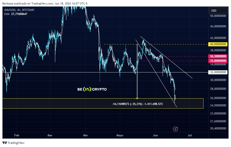 Sponsored SponsoredDe no ser recuperada el área macro de los 28 dólares – 32 dólares en el corto plazo, se espera una continuidad bajista con el objetivo de perforar el nivel de los 24.5 dólares, una continuidad bajista a la siguiente área de liquidez los 16 dólares.