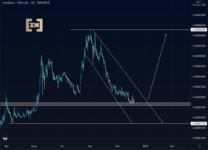 Cardano busca estabilización en su cotización entre los 0.000025 BTC y 0.000027 BTC. ADA en las últimas semanas se ha venido encontrando dentro de una fuerte tendencia bajista.