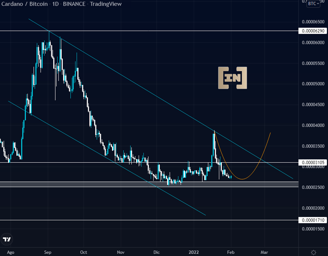 Para Cardano, el soporte de los 0.000025 BTC sigue empleándose como zona de acumulación y consolidación.