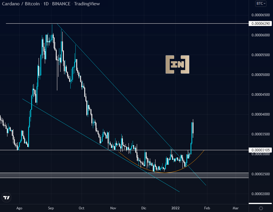 Cardano presenta una pequeña corrección al soporte de los 0.00003 BTC.