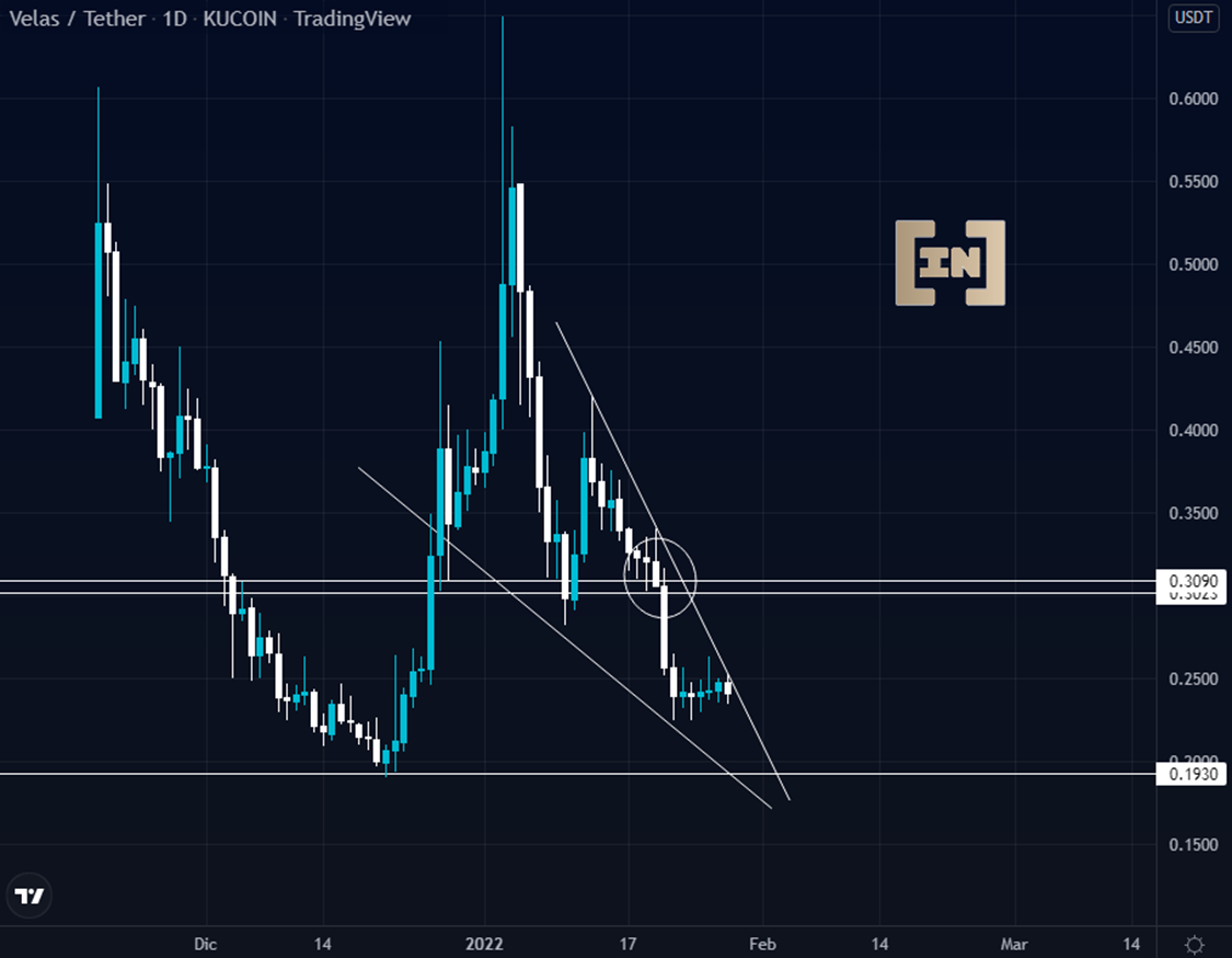 Velas continúa dentro de un rango de acumulación en el área de los 0.25 dólares.