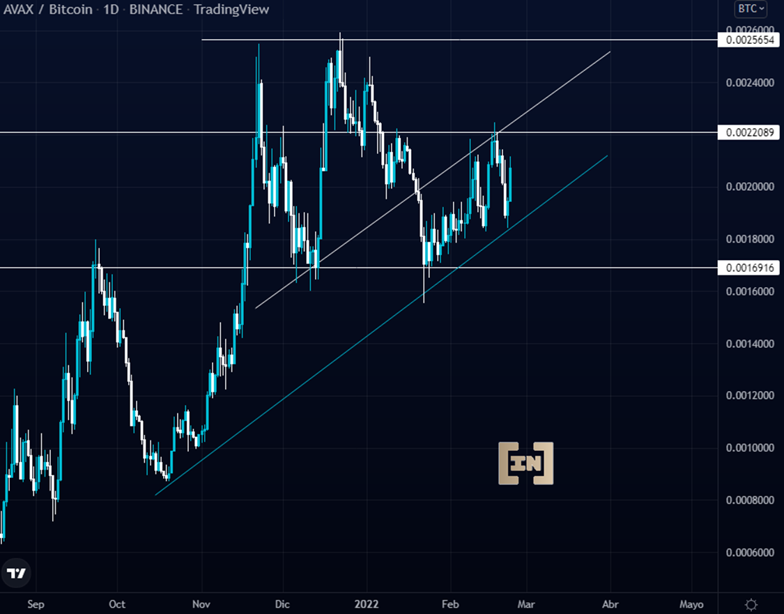 AVAX ha presentado un gran impulso alcista los últimos días, acompañando a otros token como LUNA y MATIC. Sin embargo, el reto para AVAX será superar el área de resistencia ubicada en los 0.0022 BTC.