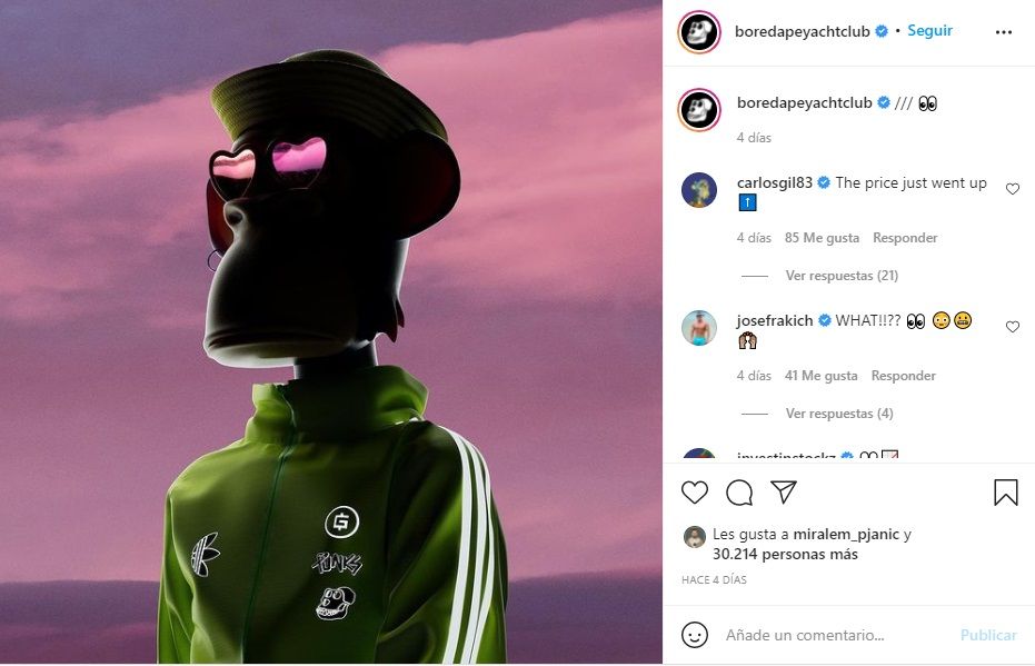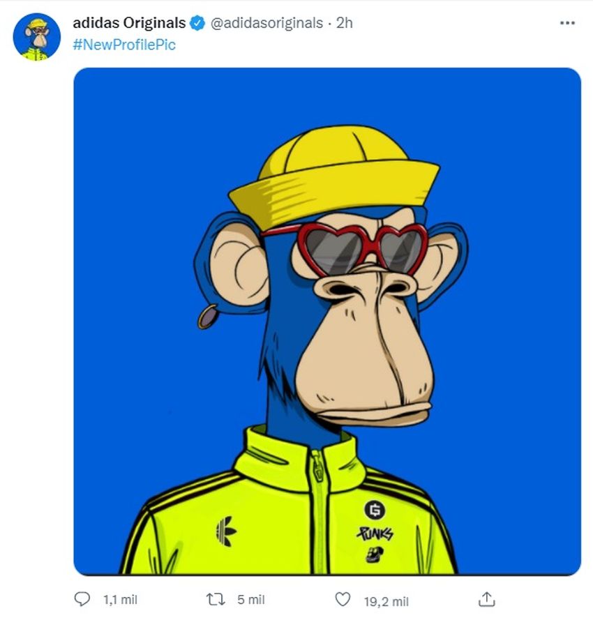 Al mismo tiempo, Adidas cambió su foto de perfil en la red social Twitter y colocó la imagen de un Bored Ape.