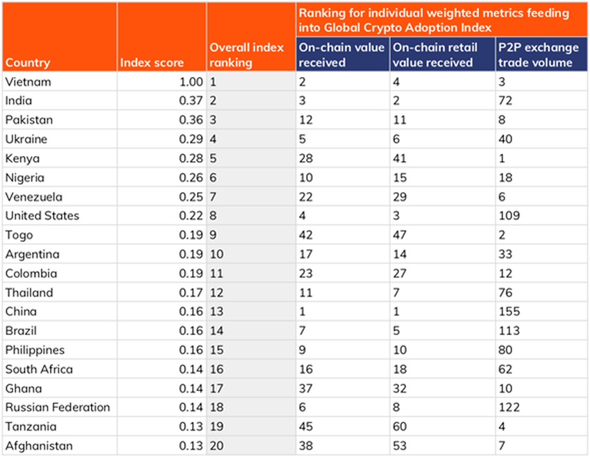 SponsoredVarios países en mercados emergentes, incluidos Kenia, Nigeria, Vietnam y Venezuela, ocupan un lugar destacado en el índice realizado por Chainalysis, debido a que poseen grandes volúmenes de transacciones en plataformas P2P cuando se ajustan por PPA per cápita y población que usa Internet.