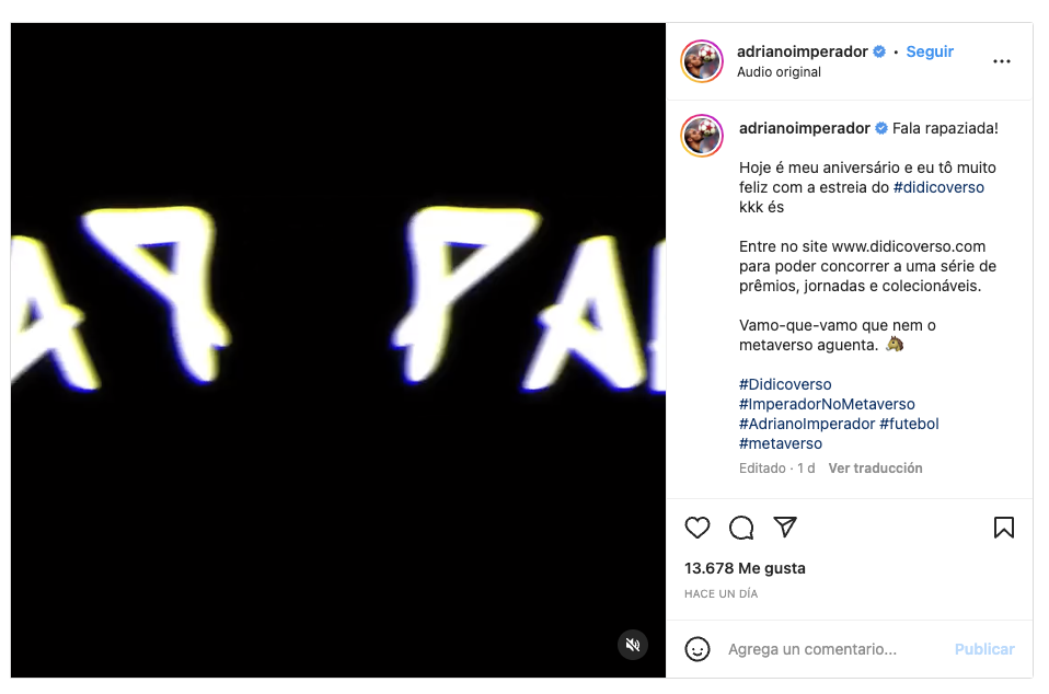 En el aniversario que completa cuatro décadas de vida, el exdelantero Adriano Imperador, uno de los grandes nombres del fútbol brasileño, anunció el lanzamiento de su propio metaverso.
