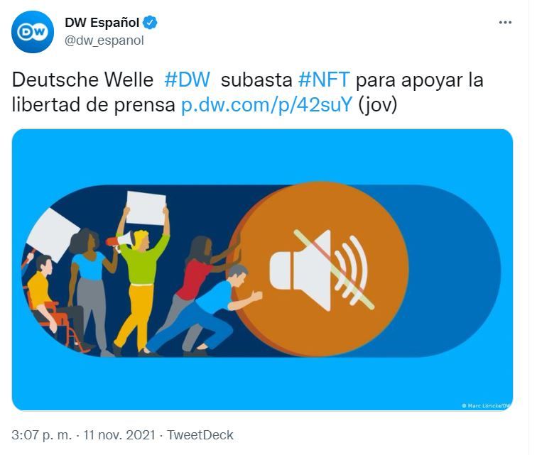La agencia de noticias internacional, con sede en Alemania, DW lanzó un NFT en honor a la libertad de prensa a nivel mundial y la venta será el próximo 16 de noviembre y los recursos serán donados a organizaciones.