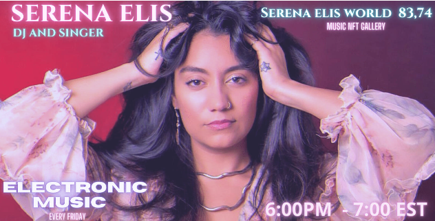 En este evento la DJ y cantante Serena Elis mostrará lo mejor de su repertorio mientras puedes disfrutar de “Serena Elis World” una galeria NFT musical. Un evento lleno de música electronica donde podras participar con tus amigos en el metaverso de Decentraland.