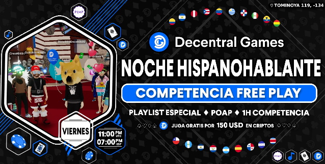 Decentral Games prepara una noche especial para hispanohablantes. Este evento tendrá mucha música, POAPS y competencias para ganar premios hasta de 150$ en criptos.