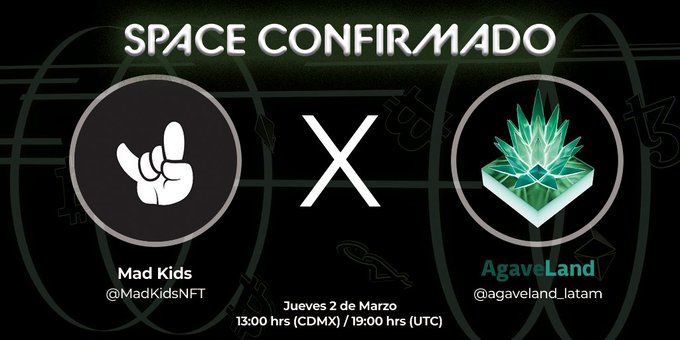 En este evento la comunidad NFT de @MadKidsNFT estará conversando con AgaveLand sobre las oportunidades que los NFT brindan a los nuevos negocios en el mundo Web3.