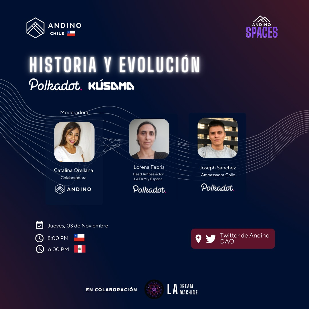 En este space la comunidad de @andinodao estará conversando con la Head Ambassador LATAM y España de Polkadot y Joseph Sánchez.