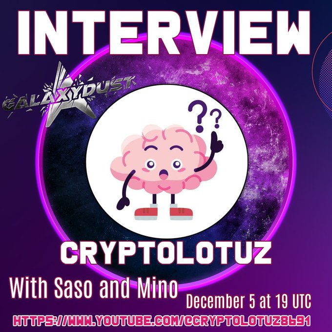 En este evento el equipo de CryptoLotuz estará entrevistando a los CEOs de GalaxyDust.