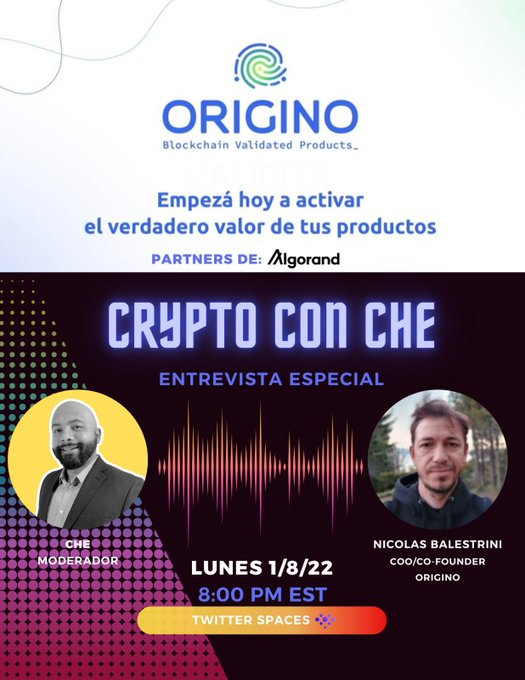 En este evento conversaremos con Nicolás Balestrini (COO/CO-Founder de Origino) prestigiosa iniciativa argentina partner de Algorand que logró triunfos importantes en el extranjero. No te puedes perder a este proyecto.