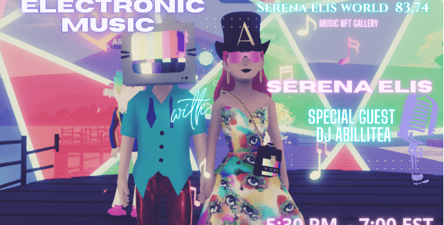 Noche de Música en Serena Elis World. 83, 74 Música en vivo por Serena Elis. ¡Únete a la fiesta para disfrutar de música house, cantar y un DJ con NFT de música y una sesión exclusiva!