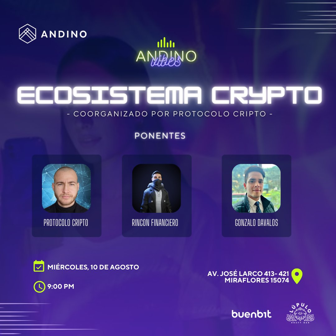 Encuentro de networking donde conversaremos sobre diversos tópicos de tecnología, innovación, Web3 y emprendimiento. Además, si eres un creador Web3 podrás presentar tu proyecto para que la comunidad lo conozca.