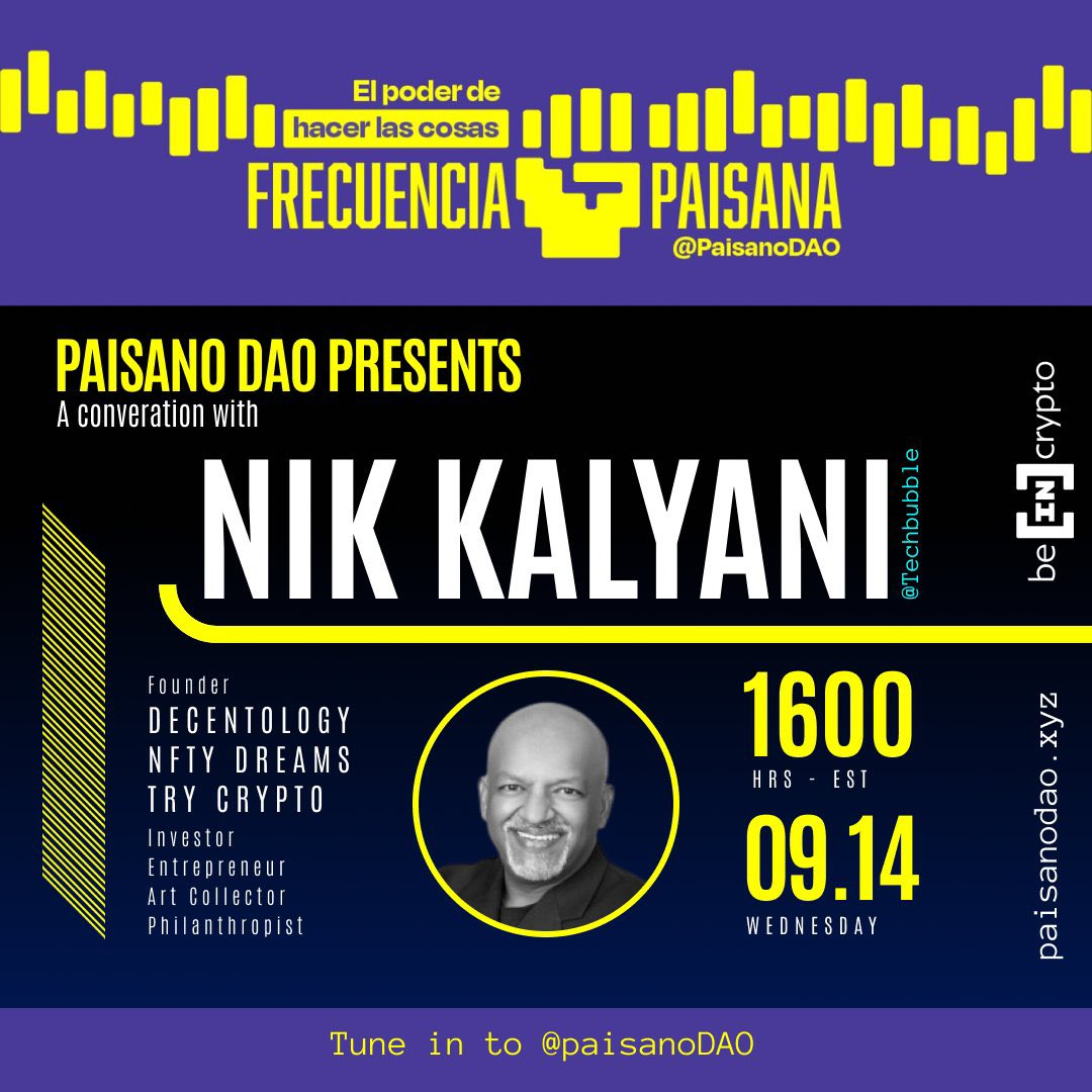 En ese evento conversaremos con Nik Kalyani, fundador de Decentology, NFT Dreams y Try Crypto para aprender más del mundo web3.