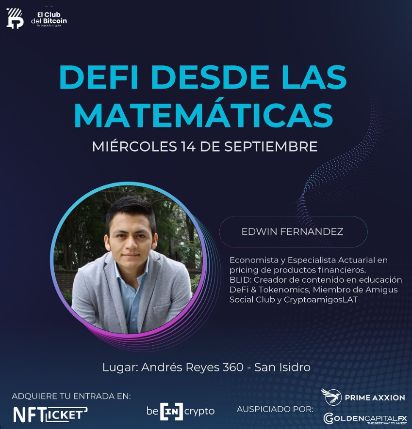 En este evento Edwin Fernandez más conocido como BLID estará compartiendo parte de su expertise de economía en el mundo Web3. En este evento aprenderás del lado más técnico del mundo de las finanzas descentralizadas, donde podrás resolver tus dudas al finalizar la ponencia y participar de networking Web3.