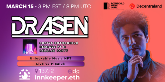 SponsoredDrasen tendrá su primera fiesta de lanzamiento en el Metaverso para celebrar sus 6 nuevos Remixes para Sofiya Rothschild. En este evento, también podrás escuchar un set exclusivo y adquirir un NFT musical.