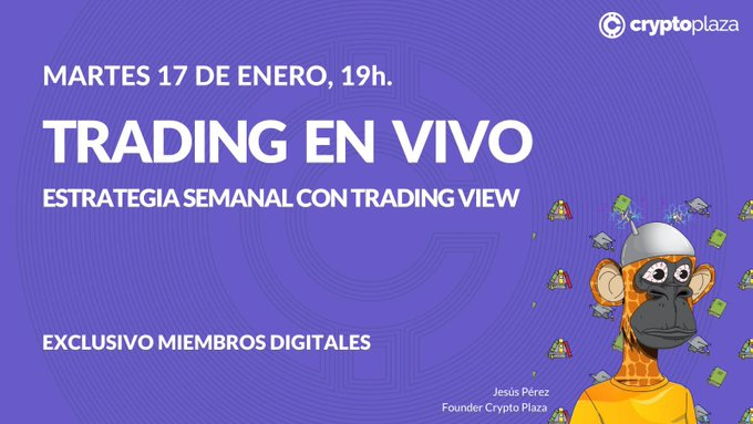 En este evento el equipo de Cryptoplaza de la mano de Jesús Pérez estará realizando operaciones de trading en vivo y planteando su análisis para el futuro del mercado cripto. Este evento es todos los martes para miembros de CryptoPlaza. Si quieres participar de este y sus próximos eventos puedes revisar la información en el link de registro.