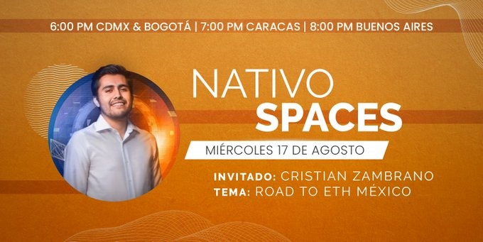 En este space abordaremos NATIVO, una de las iniciativas desarrolladas por latinos pioneras en el mundo de NFT Marketplace hispanos. También hablaremos sobre el ROAD to ETH México.