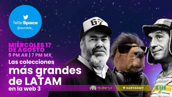 En este space aprenderás de los proyectos más destacados en LatAm junto a @qurable_ y también aprenderás más de las nuevas colecciones de @elchavodel8club @miloverso_nft