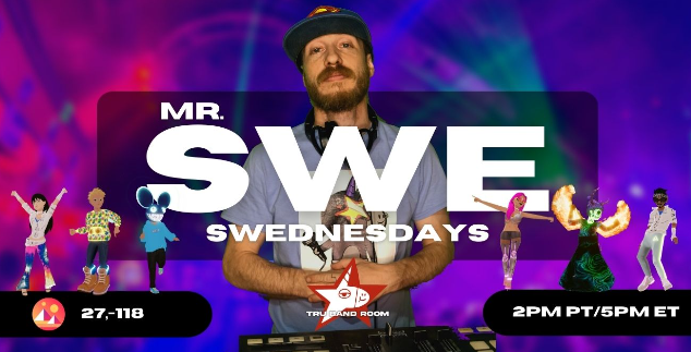En este evento se presenta el artista Mr.Swe para activar los miércoles con la mejor música en el metaverso de @decentraland.
