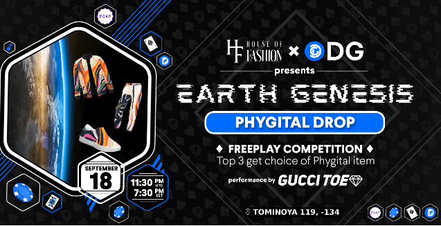 Únete a nosotros para celebrar la primera entrega de NFTs phygitales de la Casa de la Moda, Earth Genesis, una línea de ropa phygital en la que puedes llevar tu ropa de diseño en Decentraland y en la vida real.